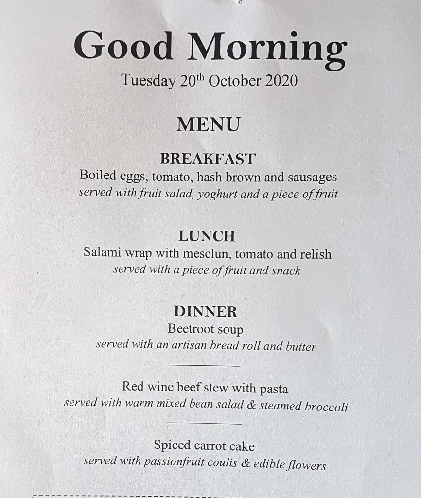 But then I quite understandably assumed that Ard had somehow got her hands on detailed plans of the hotel air conditioning duct system and she was planning to escape from quarantine via those ducts, Tom Cruise Mission Impossible-style!