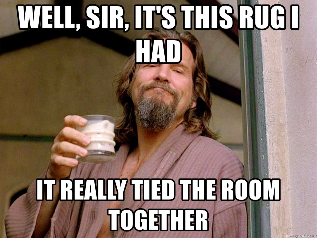 And ANIL T. who identified my comment about the carpet “really tying the room together” as a refence to THE BIG LEBOWSKI.